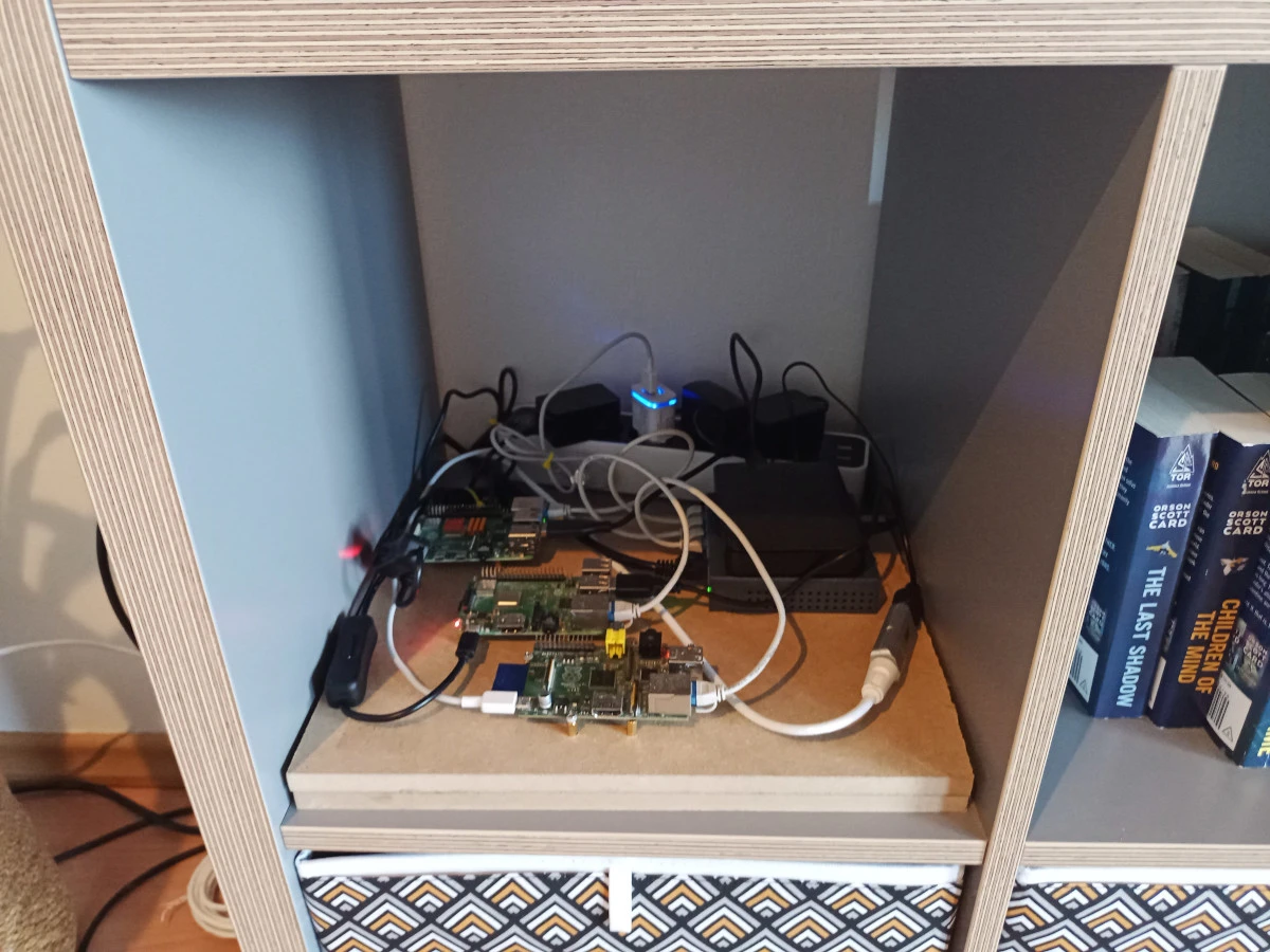 Now to put in the shelf, out of the way. With the best cable management that I felt like doing.